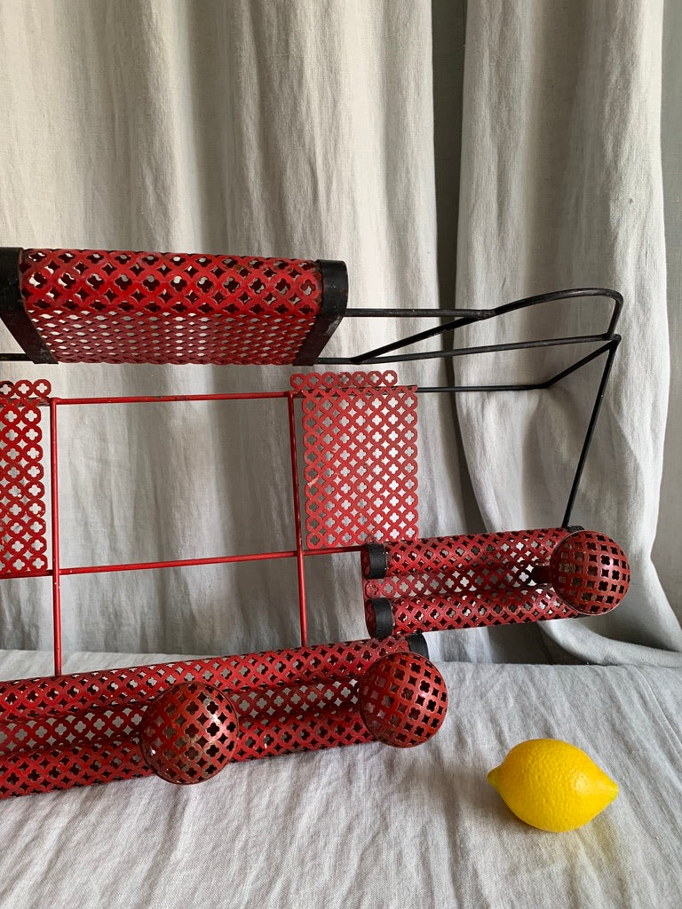 Super Cool French Vintage Mathieu Matégot inspired coat rack in the most delicious red colored perforated metal.