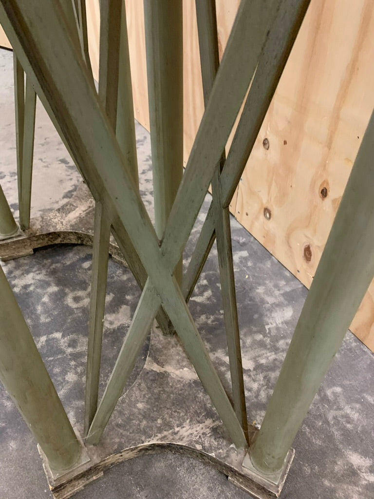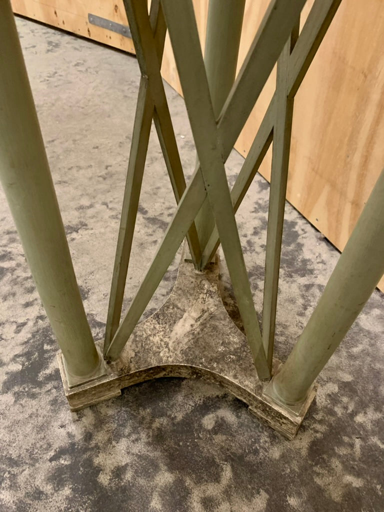 Elegant French handmade pair of wooden Empire pedestals with a faux-marbre painted top and base.